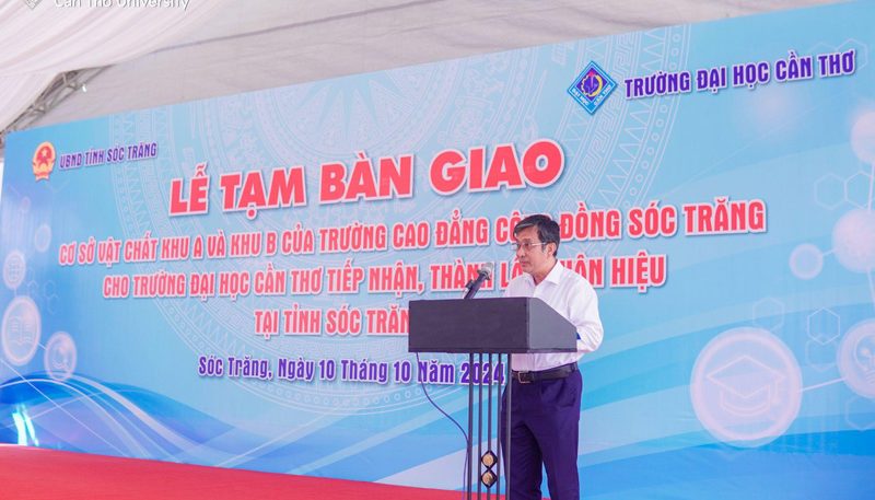 Sáng ngày 10/10/2024, tại tỉnh Sóc Trăng, Trường Đại học Cần Thơ (ĐHCT) phối hợp với UBND tỉnh Sóc Trăng tổ chức Lễ tạm bàn giao cơ sở vật chất Khu A và Khu B của Trường Cao đẳng Cộng đồng (CĐCĐ) Sóc Trăng cho Trường ĐHCT tiếp nhận, thành lập phân hiệu tại tỉnh Sóc Trăng.